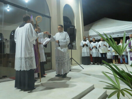 Após anos de espera, moradores do Setor Santa Fé, na região sul de Palmas, celebraram nesta quinta, 7, a instalação da Paróquia Sagrado Coração de Jesus. O momento, presidido por Dom Pedro, foi marcado ainda pela posse do primeiro pároco, Padre Heldeir Gomes Carneiro.
